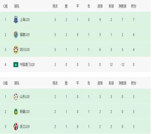 徐根宝执教的上海U20男足艰难晋级八强;浙江队、新疆队还需要通过抽签决定谁能晋级。